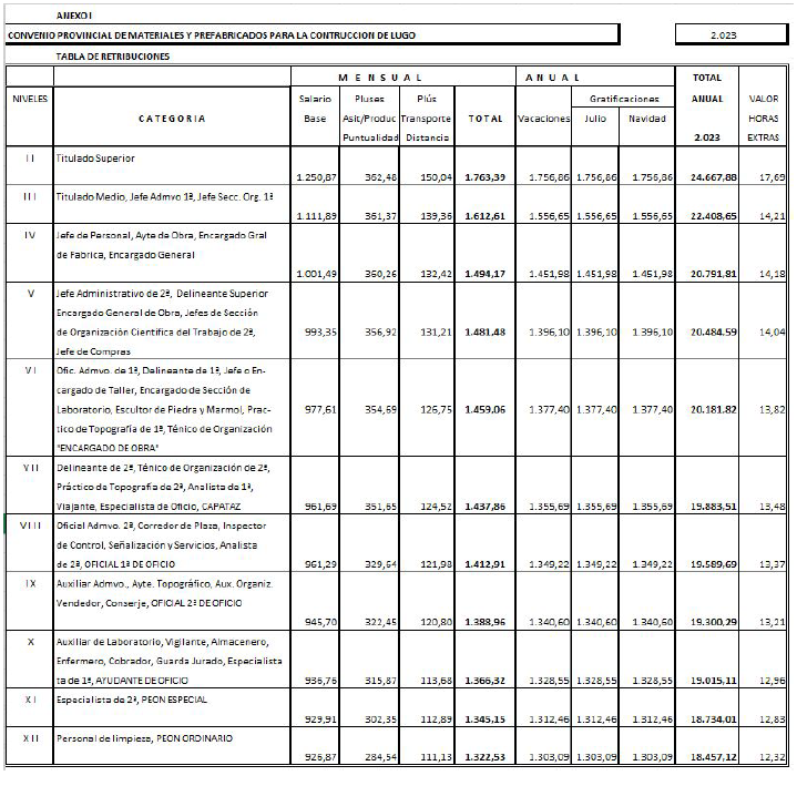 CONVENIO COLECTIVO DE TRABAJO PARA LA ACTIVIDAD DE MATERIALES Y PREFABRICADOS PARA LA CONSTRUCCIÓN DE LA PROVINCIA DE LUGO 2023-2026.