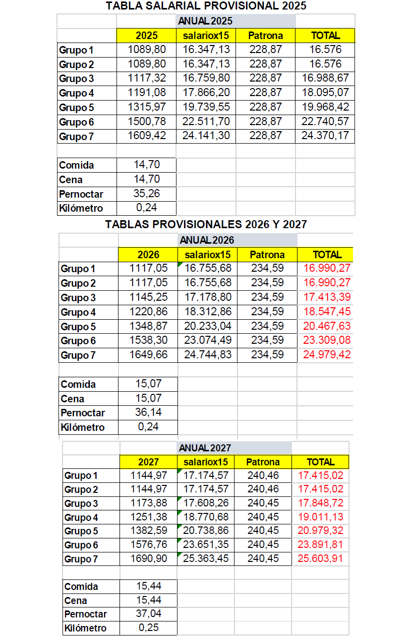 Año 2026: Incremento de 2,5% sobre las tablas de 2025 desde el 1 de enero de 2026. En el caso que el IPC de 2026 sea superior al 2,5%, se incrementará hasta un 1%, que se incorporará en las tablas de 2027 (sin atrasos)