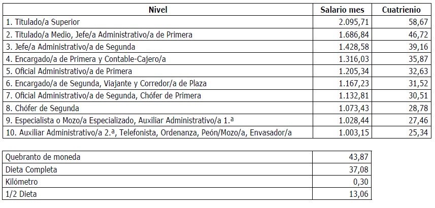 Niveles a título ejemplificativo: Oficial Administrativo de Segunda, Chófer de Primera.