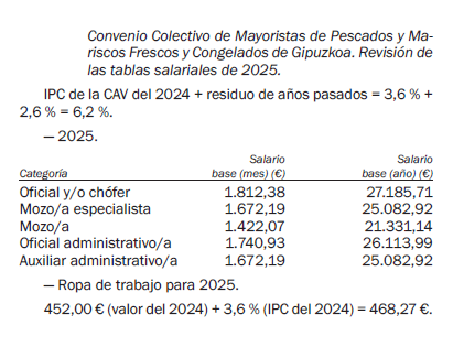 Único. El día 27 de enero de 2025, la comisión negociadora del Convenio Colectivo de Mayoristas de Pescado y Mariscos Frescos y Congelados de Gipuzkoa, ha presentado la revisión salarial para el año 2025, prevista en el mismo.