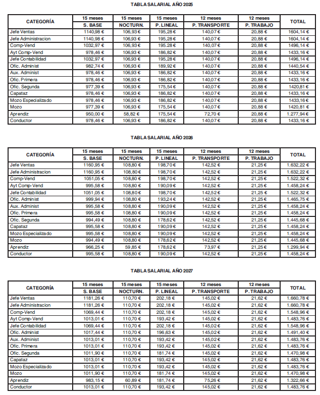 Durante la vigencia del presente Convenio, se establece un salario base correspondiente a las diferentes categorías profesionales de las personas trabajadoras, afectas a este Convenio, cuyas cuantías económicas correspondientes a los años de vigencia del mismo se encuentran recogidas en la tabla salarial del Anexo III.