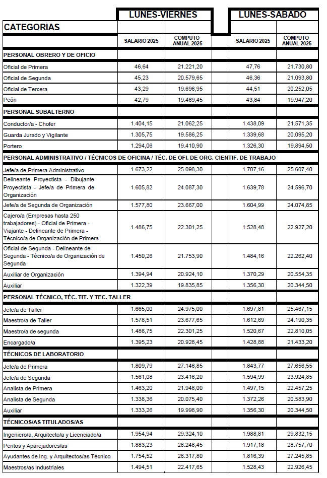 – Técnicos titulados y no titulados y administrativos: un mes.