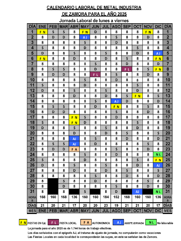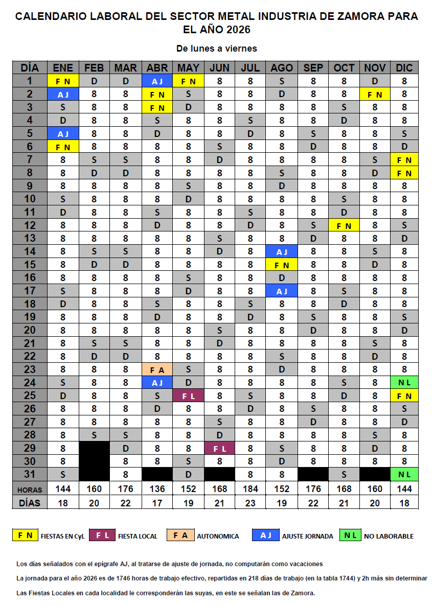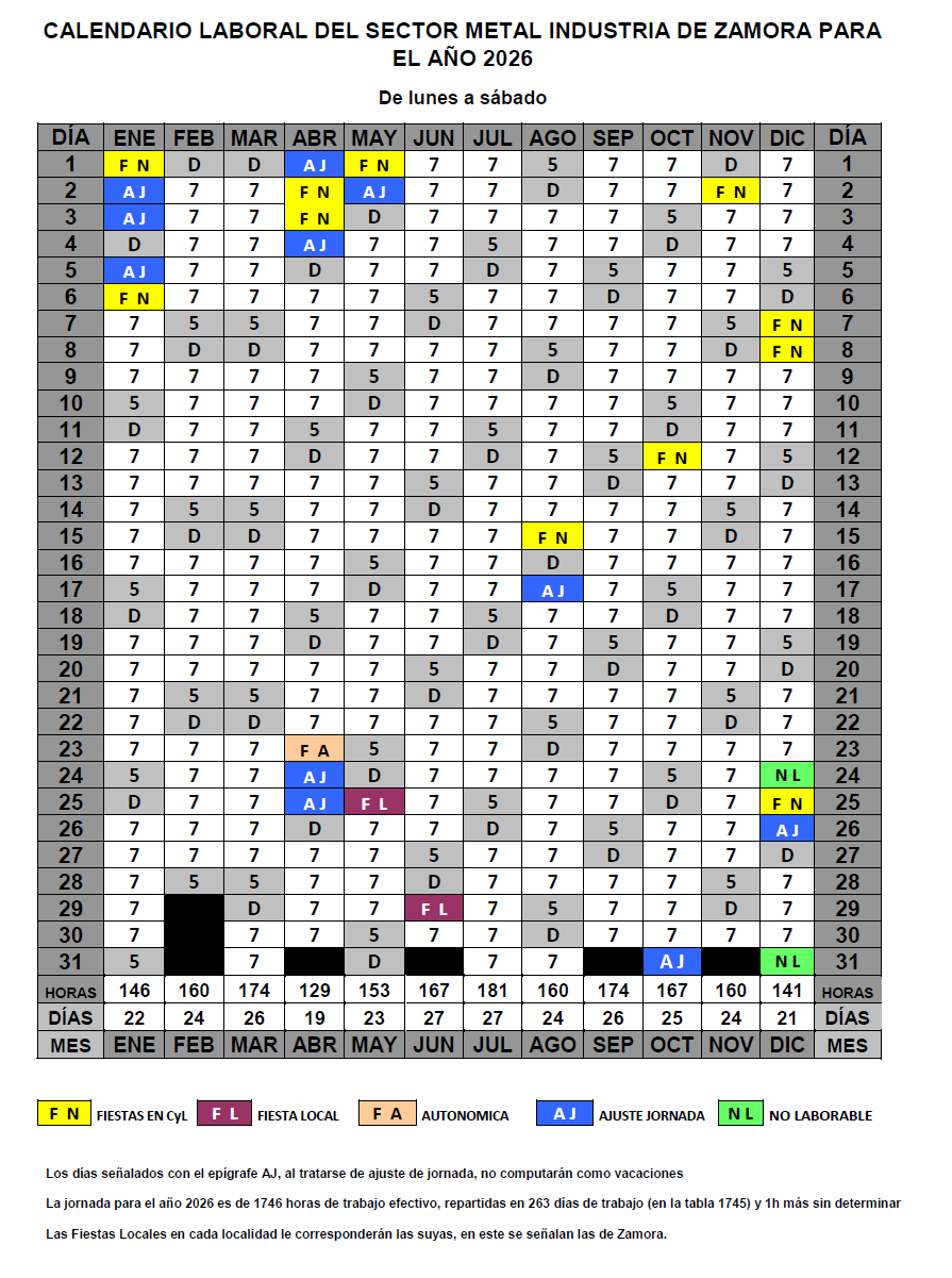 Resolución de 22 de diciembre de 2025, de la Jefe de la Oficina Territorial de Trabajo de la Delegación Territorial de la Junta de Castilla y León en Zamora, por la que se dispone el registro y la publicación del Acuerdo de la Comisión Negociadora del Convenio Colectivo Provincial del Sector del Metal Industria de Zamora, en el que se establece el calendario laboral para el año 2026 (Código del Acuerdo 49001805011981/ Localizador CL_PG85CW83).