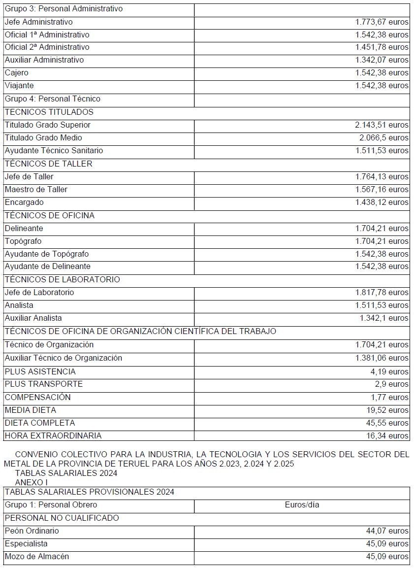 CONVENIO COLECTIVO DE LA INDUSTRIA, LA TECNOLOGIA Y LOS SERVICIOS DEL SECTOR DEL METAL DE LA PROVINCIA DE TERUEL PARA LOS AÑOS 2.023, 2.024 Y 2.025