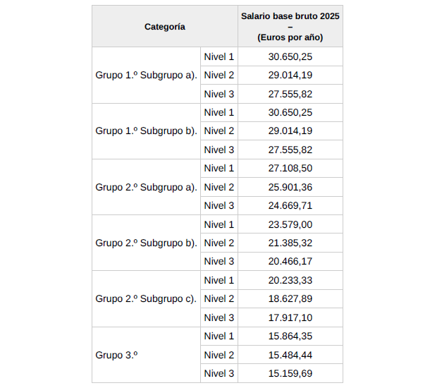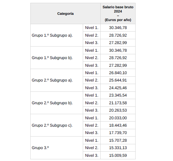 Tabla salario base bruto: