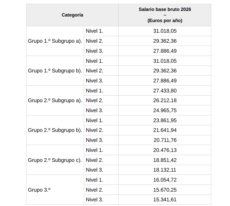 2. Tabla salarial fija para el año 2026: