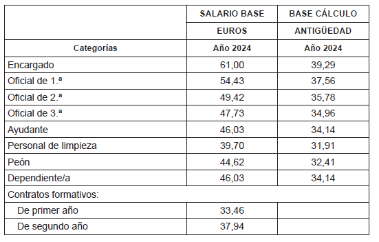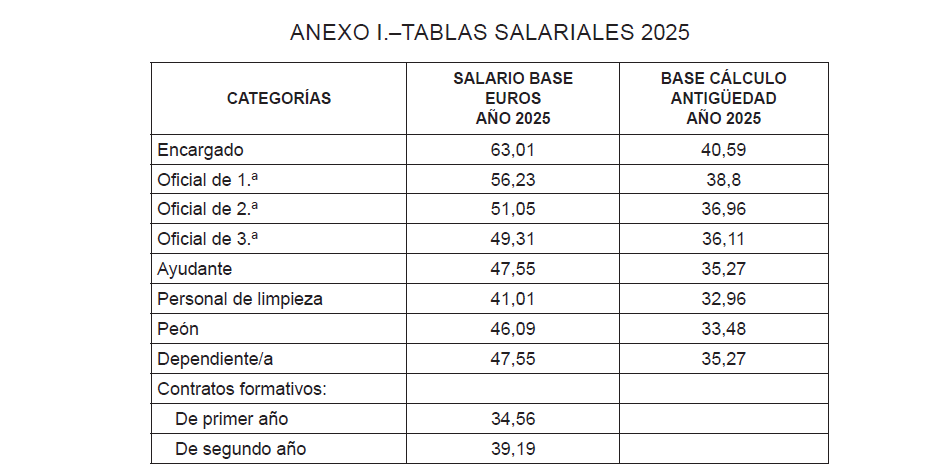 Las tablas son el resultado aplicar un 3,30% a las tablas del año 2024, una vez actualizadas con un 0,5% adicional al resultado del IPC correspondiente al año 2024.