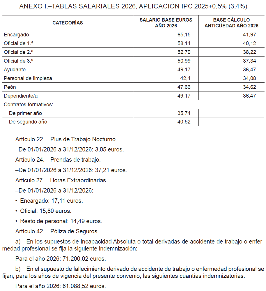 El incremento es el resultado aplicar un 3,40% a las tablas del año 2025, una vez actualizadas con un 0,5% adicional al resultado del IPC correspondiente al año 2025.