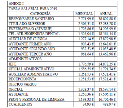 1. Aprobar para su publicación de las tablas salariales de 2019.