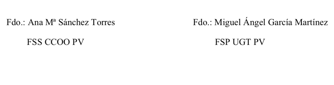 – Por parte de la Federación de empleados y empleadas de los Servicios Públicos de la Unión General de Trabajadores del País Valenciano (FeSP-UGT-PV) se designa a D. Miguel Ángel García Martínez, con DNI 24****40-M que sustituye a D. Eugenio Negrete Fernández-Pinilla.