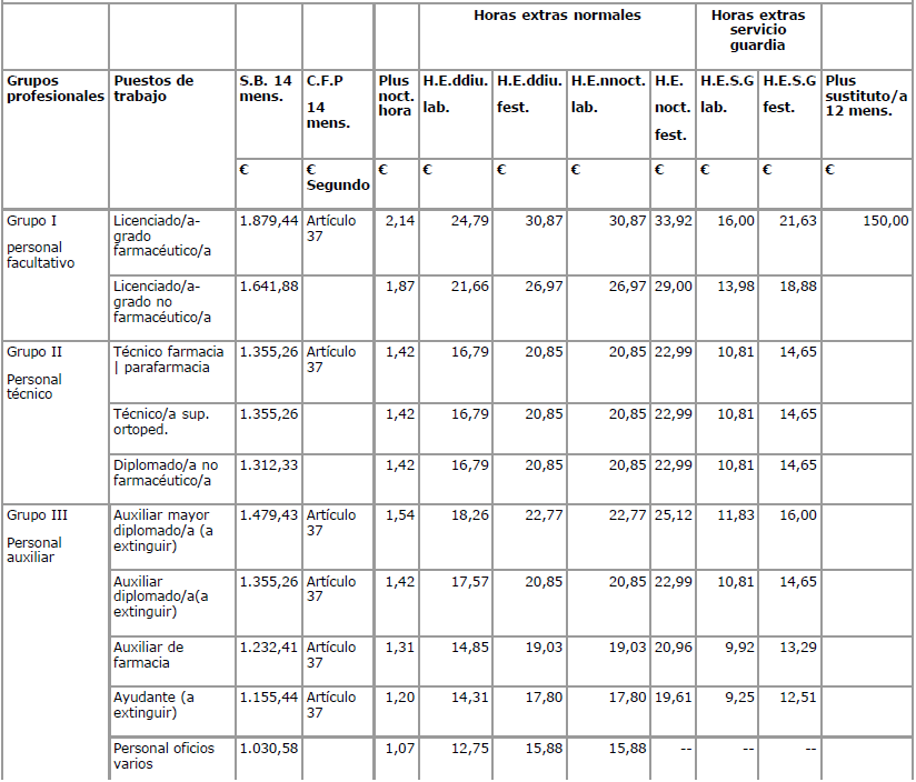 Licenciado/a grado farmacéutico/a 1.879,44 Artículo 37 2,14 24,79 30,87 30,87 33,92 16,00 21,63 150,00