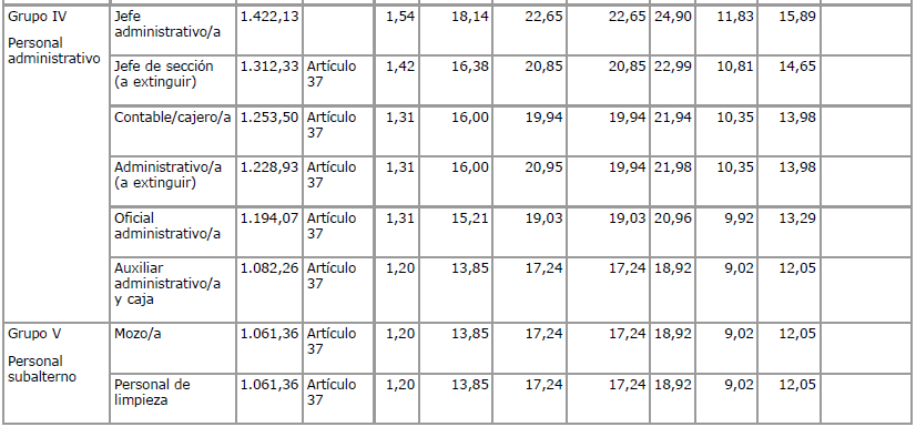 Administrativo (a extinguir) 1.228,93 Artículo 37 1,31 16,00 20,95 19,94 21,98 10,35 13,98