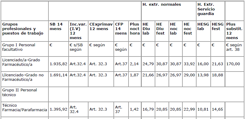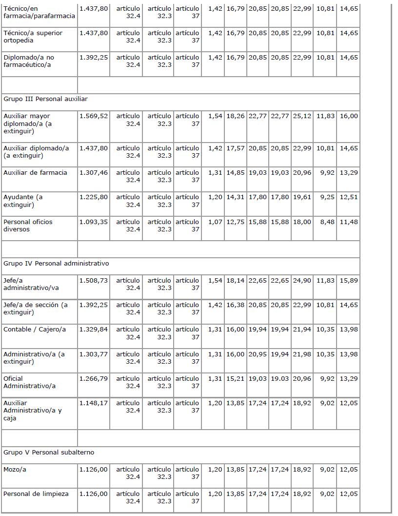 Licenciado/a grado farmacéutico/a 1.935,82 Art. 32.4 Art. 32.3 Art. 37 2,14 24,79 30,87 30,87 33,92 16,00 21,63 170,00