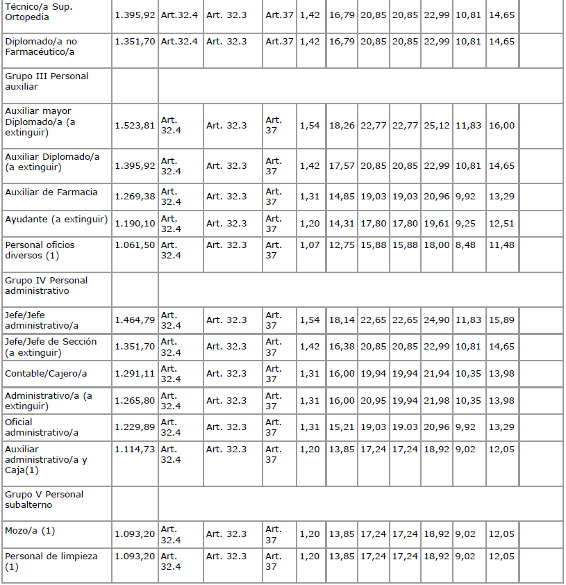 Diplomado/a no farmacéutico/a 1.392,25 art. 32.4 art. 32.3 art. 37 1,42 16,79 20,85 20,85 22,99 10,81 14,65