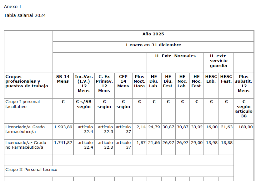 ANEXO I TABLA SALARIAL 2024 AÑO 2025. 1 ENERO EN 31 DICIEMBRE.