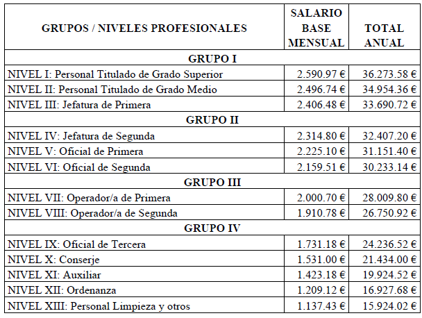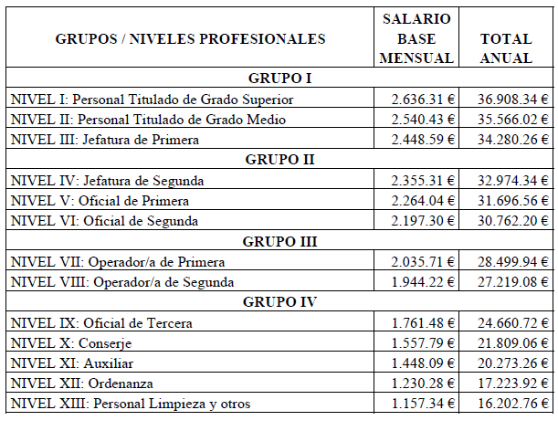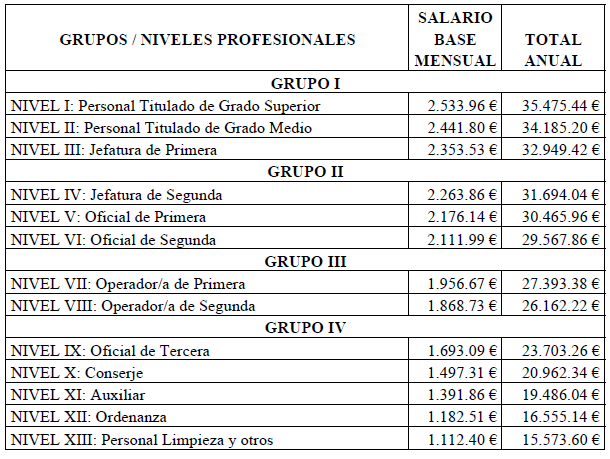 Para el año 2026, el salario base se ha incrementado en el 1,75%, quedando reflejado en la tabla salarial que como anexo IV se une a este convenio.