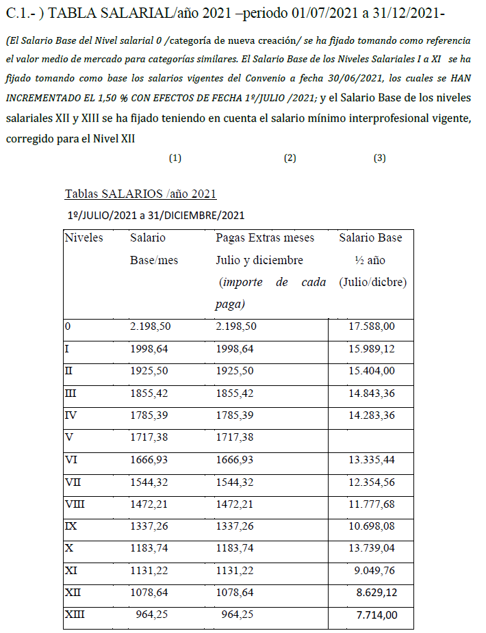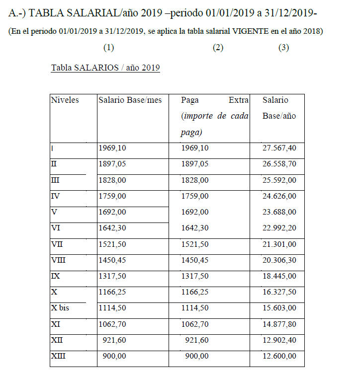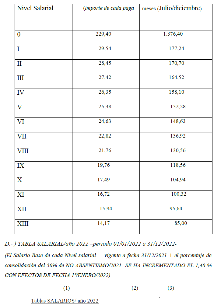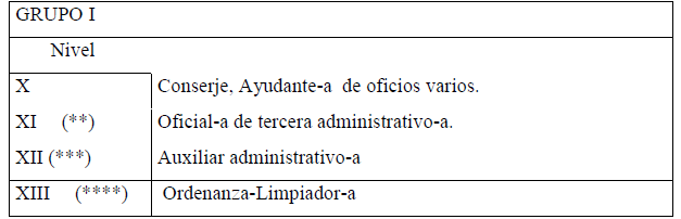 (**) Con efectos de 1º de julio de 2021 el Nivel X-bis se redenomina como Nivel XI (Comprende el grupo profesional de Oficial de tercera administrativo-a).