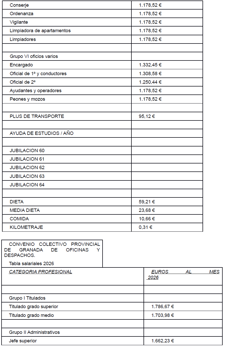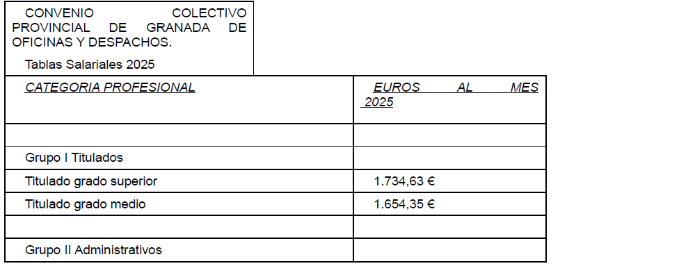 CONVENIO COLECTIVO PROVINCIAL DE GRANADA DE OFICINAS Y DESPACHOS AÑOS 2025/2026.