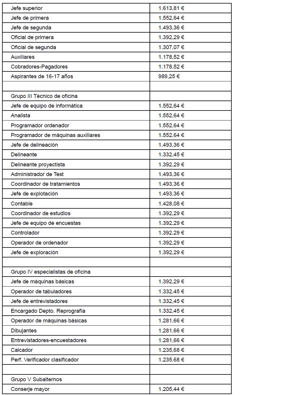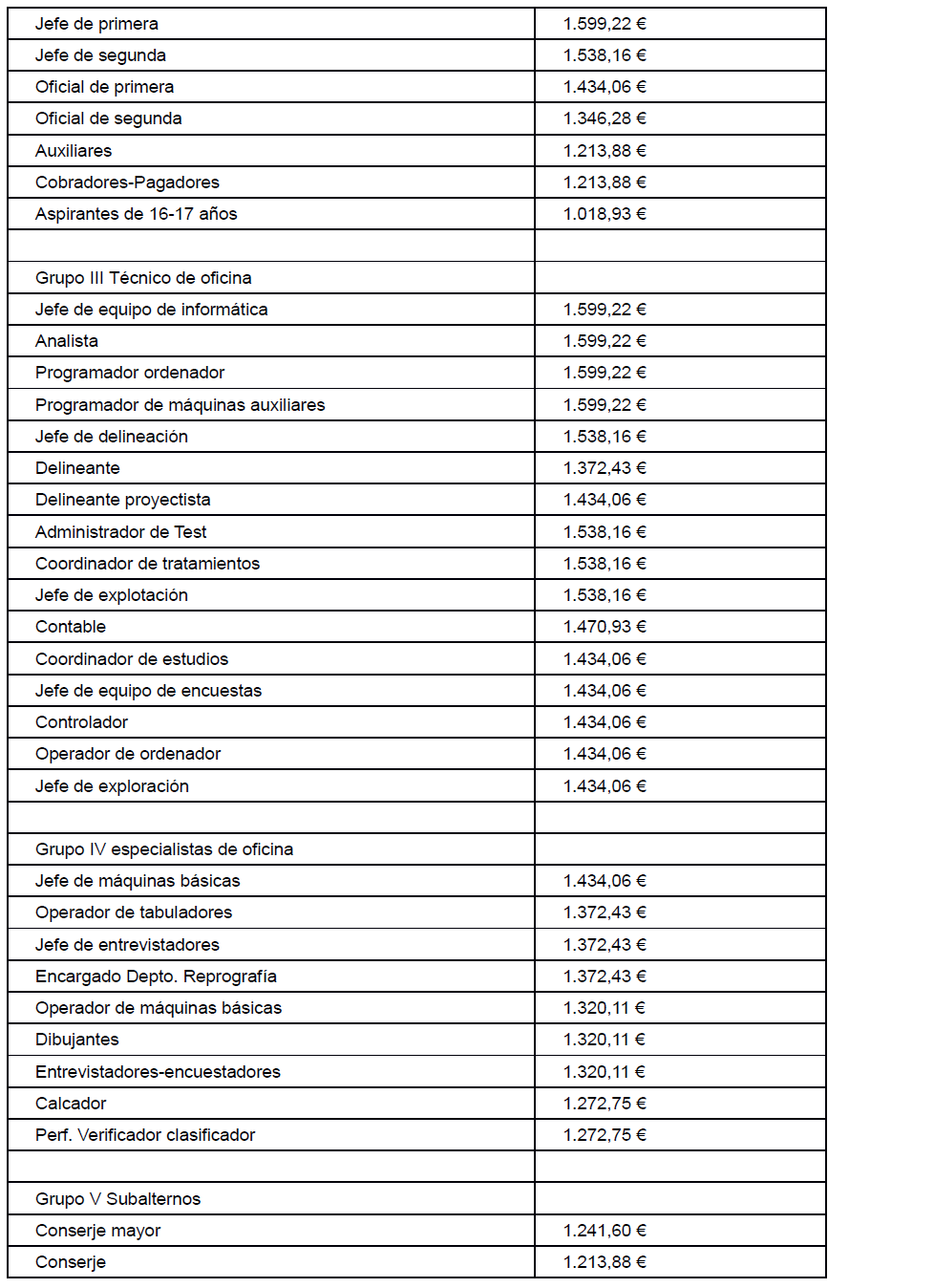 El salario base en jornada completa de trabajo será el que figura para cada categoría profesional en el anexo 1, Tablas Salariales.