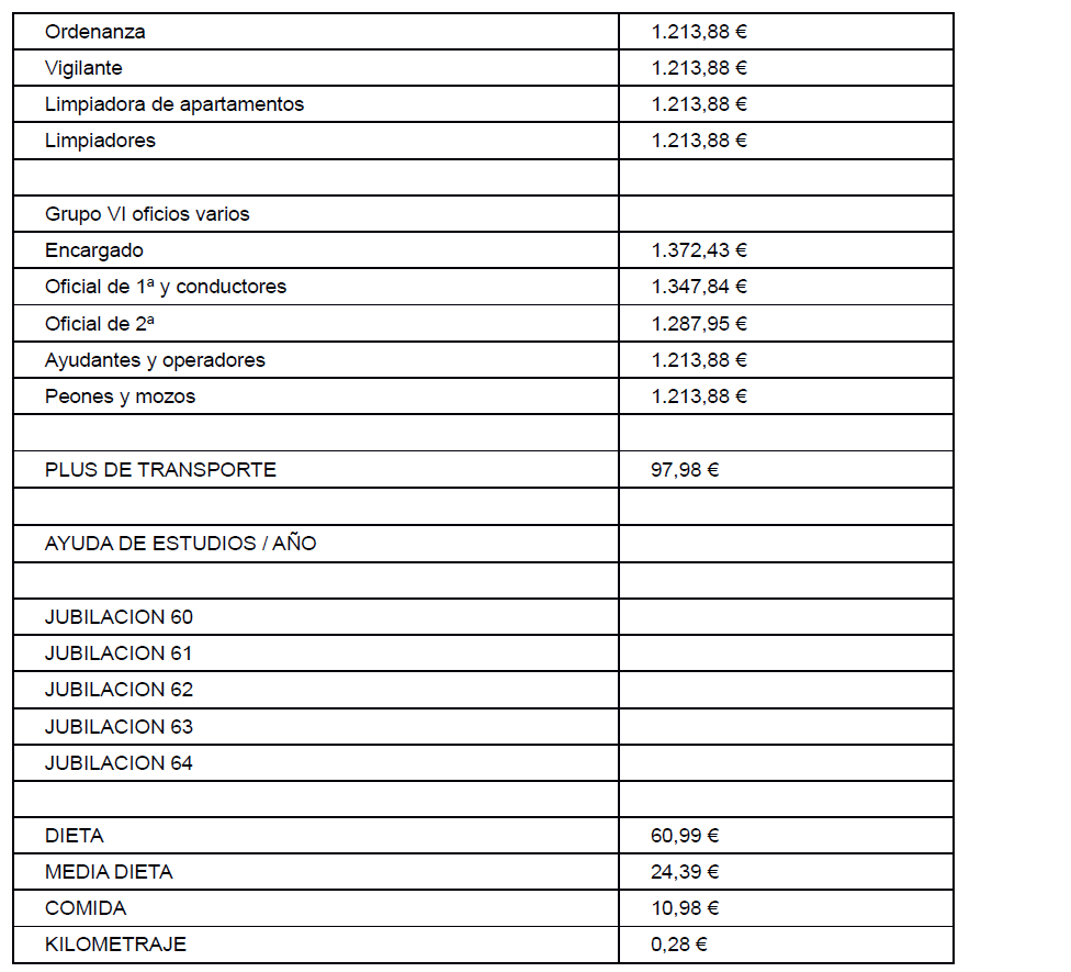 Las cantidades fijadas en este artículo tienen carácter de mínimos. Y vienen reflejadas en el Anexo 1 de las Tablas Salariales.