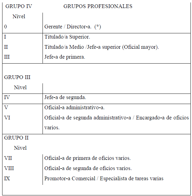 (*) Con efectos de 1º de enero de 2021, se crean los grupos profesionales de Gerente y Director-a (Nivel 0).