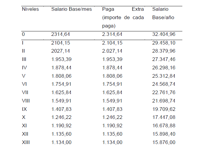(**) Con efectos de 1º de julio de 2021 el Nivel X-bis se redenomina como Nivel XI (Comprende el grupo profesional de Oficial de tercera administrativo-a).