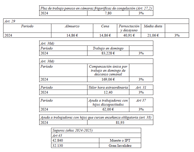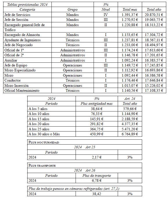 Primero. La partes acuerdan firmar las tablas salariales provisionales 2024 del Convenio de Operadores Logísticos de Sevilla 2024 que se detallan a continuación: