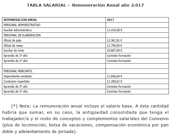 Siendo las 18,00 horas del día 20 de enero de 2017, se procede a dar cumplimiento a lo acordado en el artículo 21 del convenio colectivo de Panaderías de la Comunidad Autónoma de Murcia en materia de revisión y adecuación salarial y demás conceptos económicos para el año de 2017.