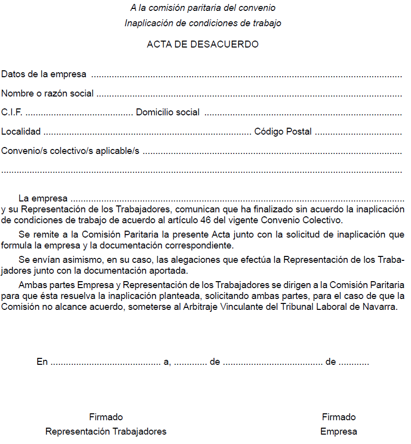 ANEXO II.- Inaplicación de condiciones de trabajo.