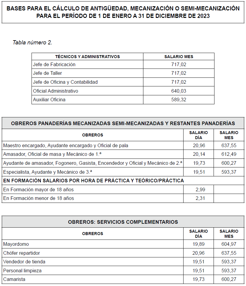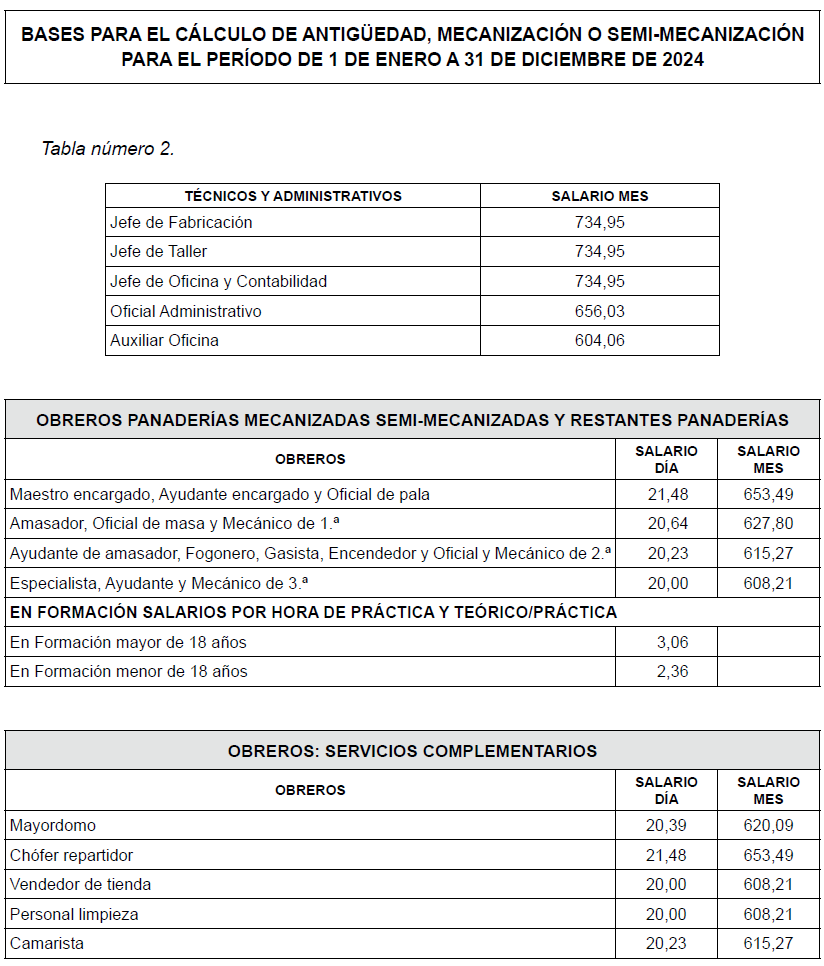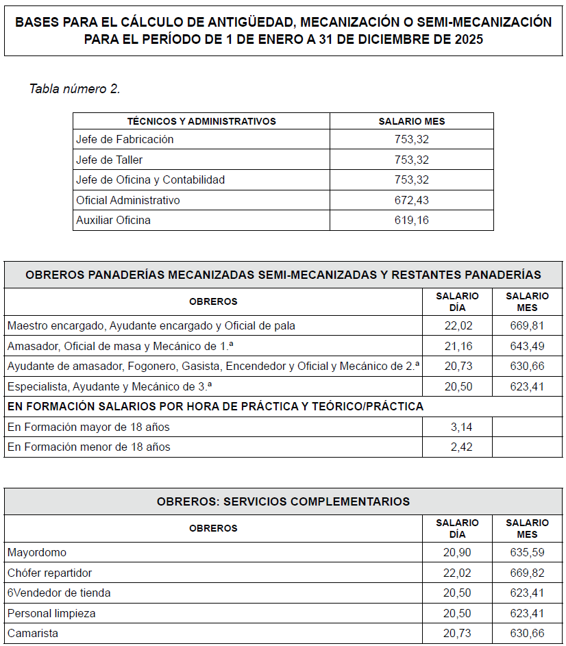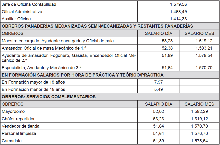 -Obreros de panaderías mecanizadas, semimecanizadas y restantes panaderías: