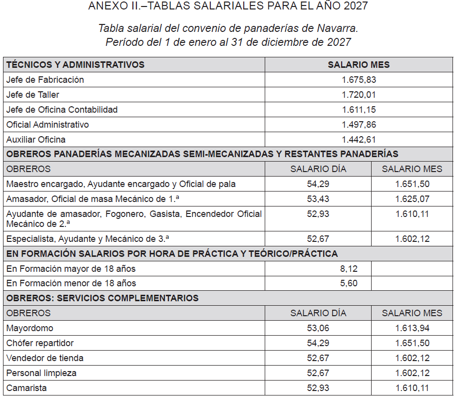 CONVENIO COLECTIVO DEL SECTOR DE PANADERÍA DE NAVARRA (Vigencia: 1 de enero 2023 a 31 de diciembre de 2027).