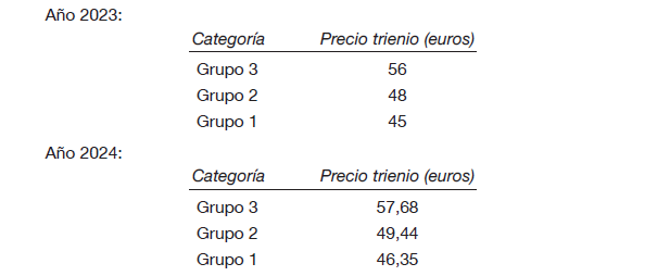 Se abonará por este concepto a todo el personal premios de antigüedad, consistentes en trienios, con el límite de tres, por periodos vencidos en las siguientes cuantías:
