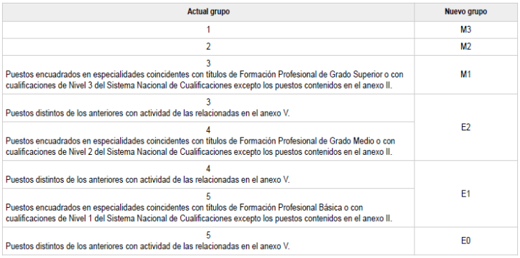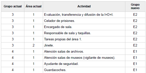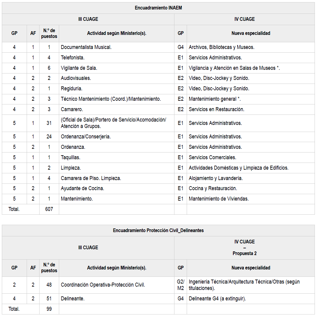 El personal que, no habiendo sido encuadrado según la clasificación profesional definida por el IV Convenio Único, desempeñe alguna de las actividades recogidas en el cuadro anterior y pertenezca, según la clasificación profesional del III Convenio Único, al grupo profesional y área funcional correspondiente, será encuadrado según el «Nuevo grupo» y la «NUEVA ESPECIALIDAD» recogida en el cuadro en los mismos términos fijados en el punto anterior.