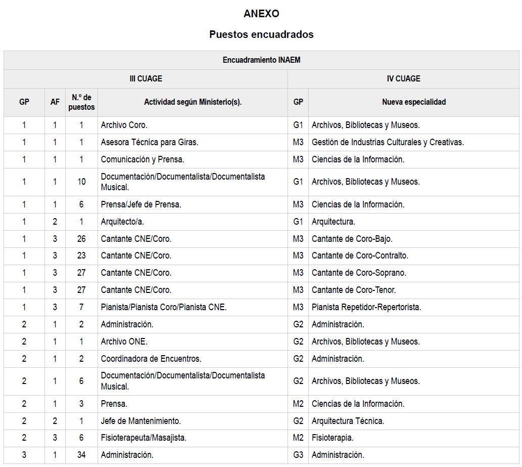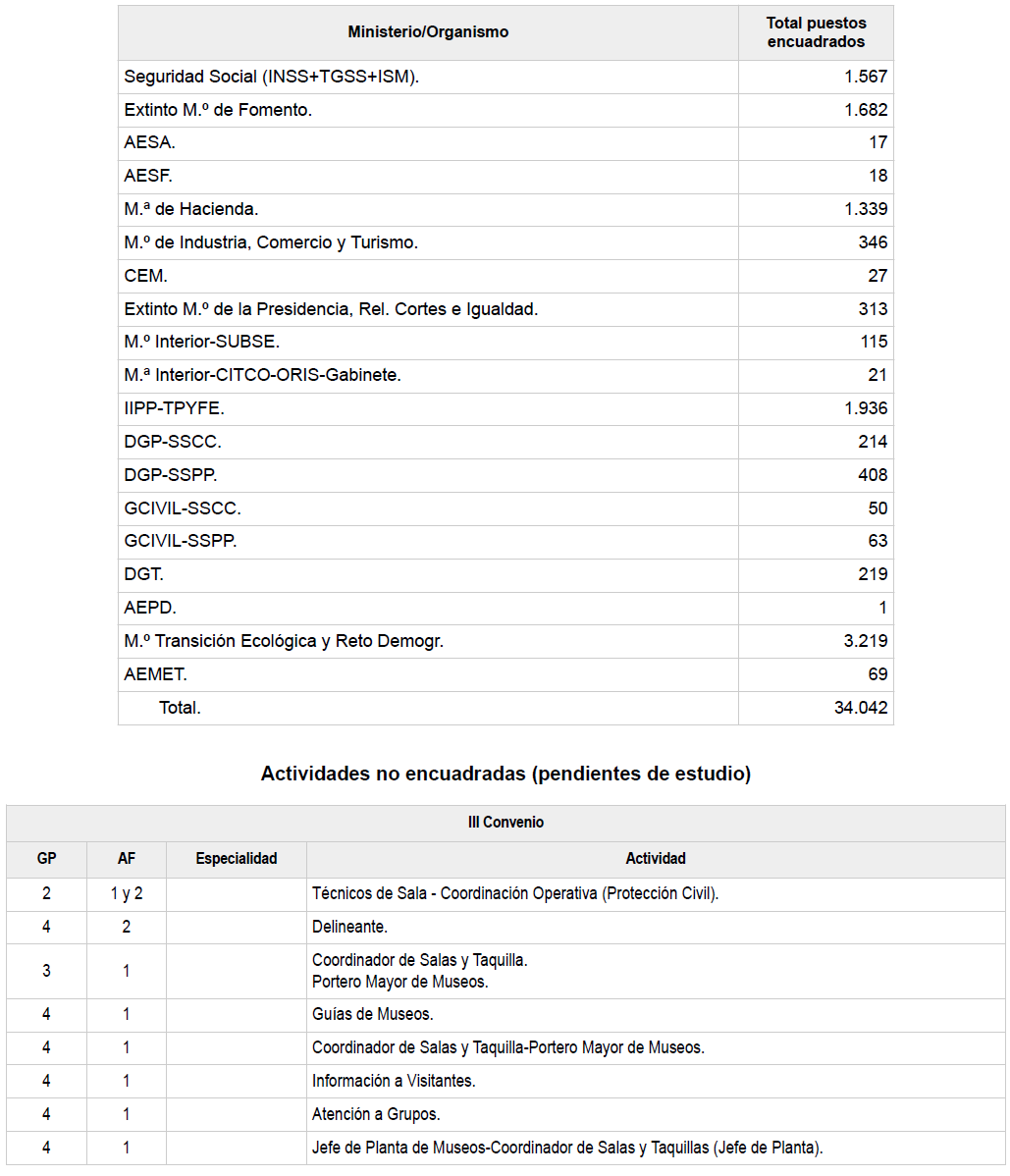 Durante varios meses, dicho Grupo de Trabajo, procedió al análisis del conjunto de actividades existentes en el ámbito de la Administración General del Estado a fin de adecuarlas a la nueva clasificación profesional.