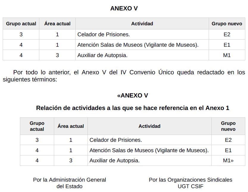 Esta Comisión Paritaria se compromete a seguir trabajando en el estudio de las actividades del Anexo V con el fin de proponer, en aquellos casos en que proceda, un encuadramiento en grupo profesional distinto según lo establecido en la disposición transitoria segunda del IV Convenio Único. Dicho Anexo, una vez la Comisión Negociadora apruebe la modificación recogida en el presente Acuerdo, queda reducido a las siguientes actividades:
