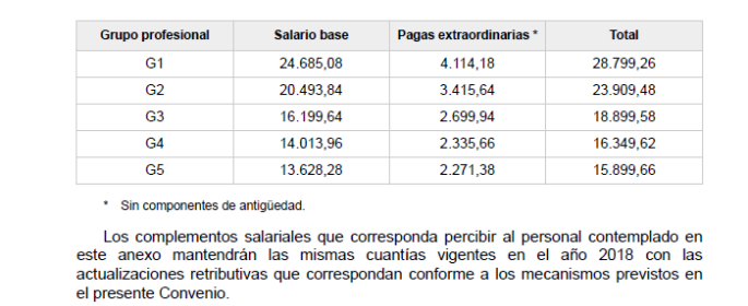 «Los complementos salariales que corresponda percibir al personal contemplado en este anexo mantendrán las mismas cuantías vigentes en el año 2018 con las actualizaciones retributivas que correspondan conforme a los mecanismos previstos en el presente convenio.»