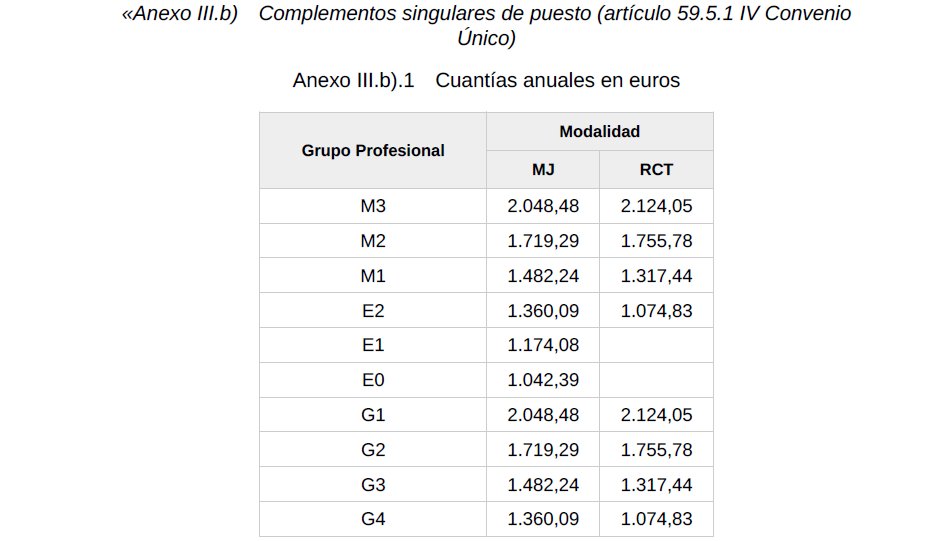 Primero. Modificación del anexo III.b).3 del IV Convenio Único.