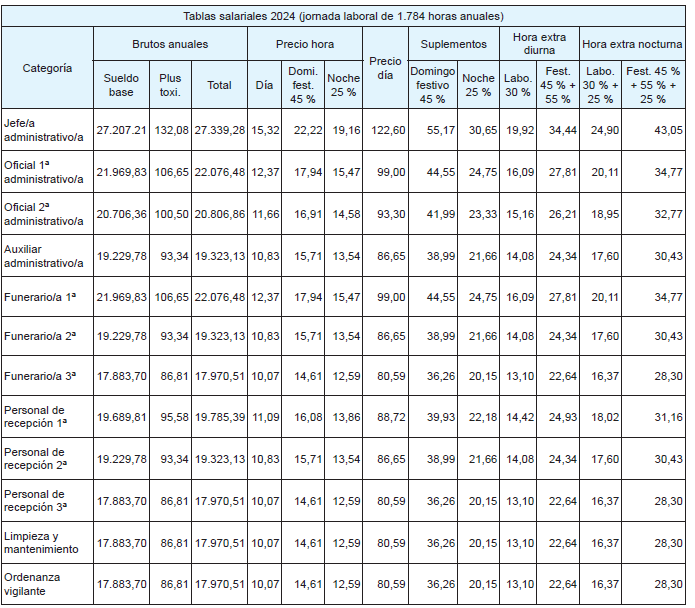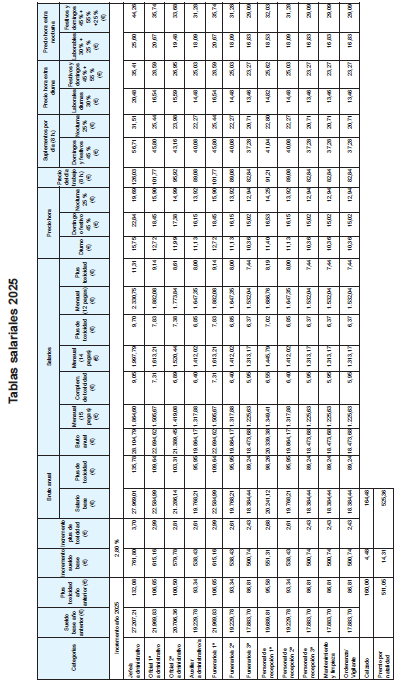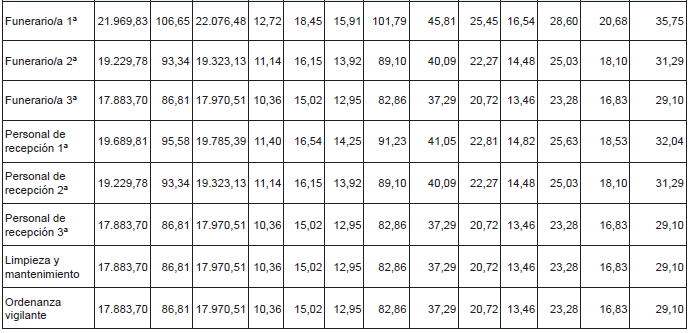 Primero. Aprobar las tablas salariales del VII Convenio colectivo para el sector de pompas fúnebres de Galicia para el año 2025, que más abajo se adjuntan.