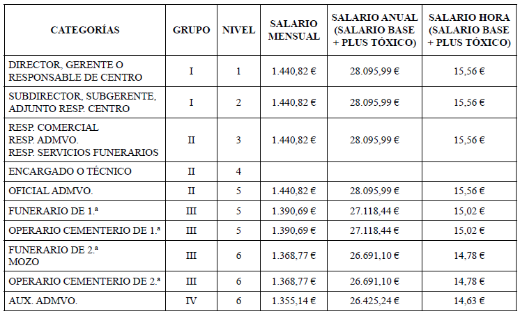 Grupo IV. Nivel 5. Funerario de 1.ª.