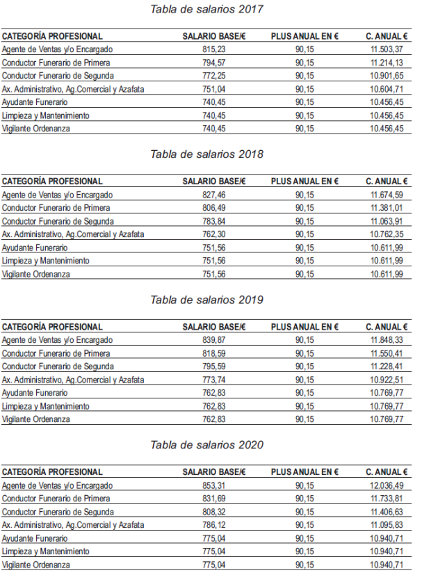Artículo 10.º Salarios para los años 2017, 2018, 2019 y 2020.