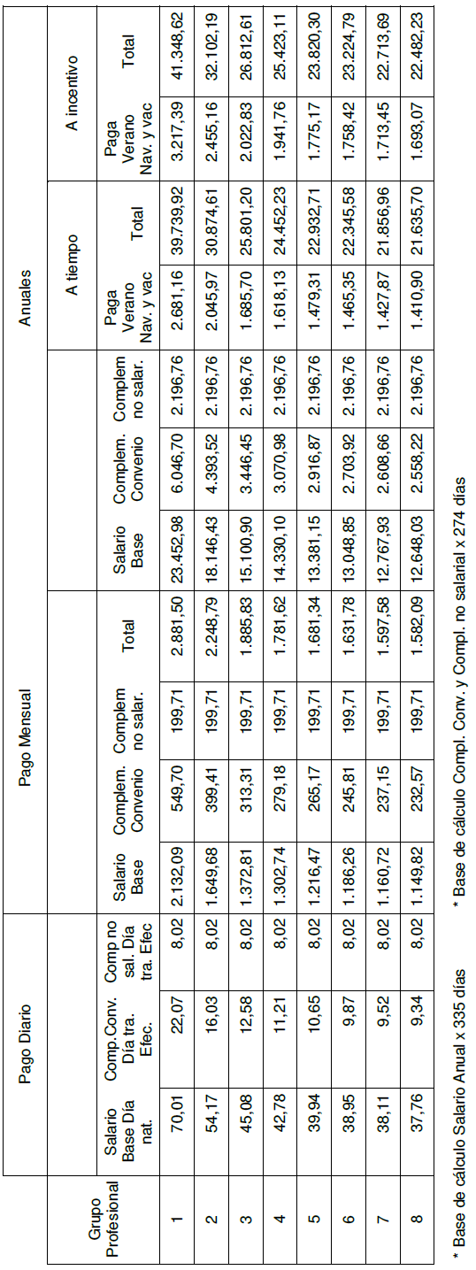 – Tablas salariales autonómicas y provinciales, así como su revisión por aplicación de los acuerdos alcanzados en el seno del Convenio general.
