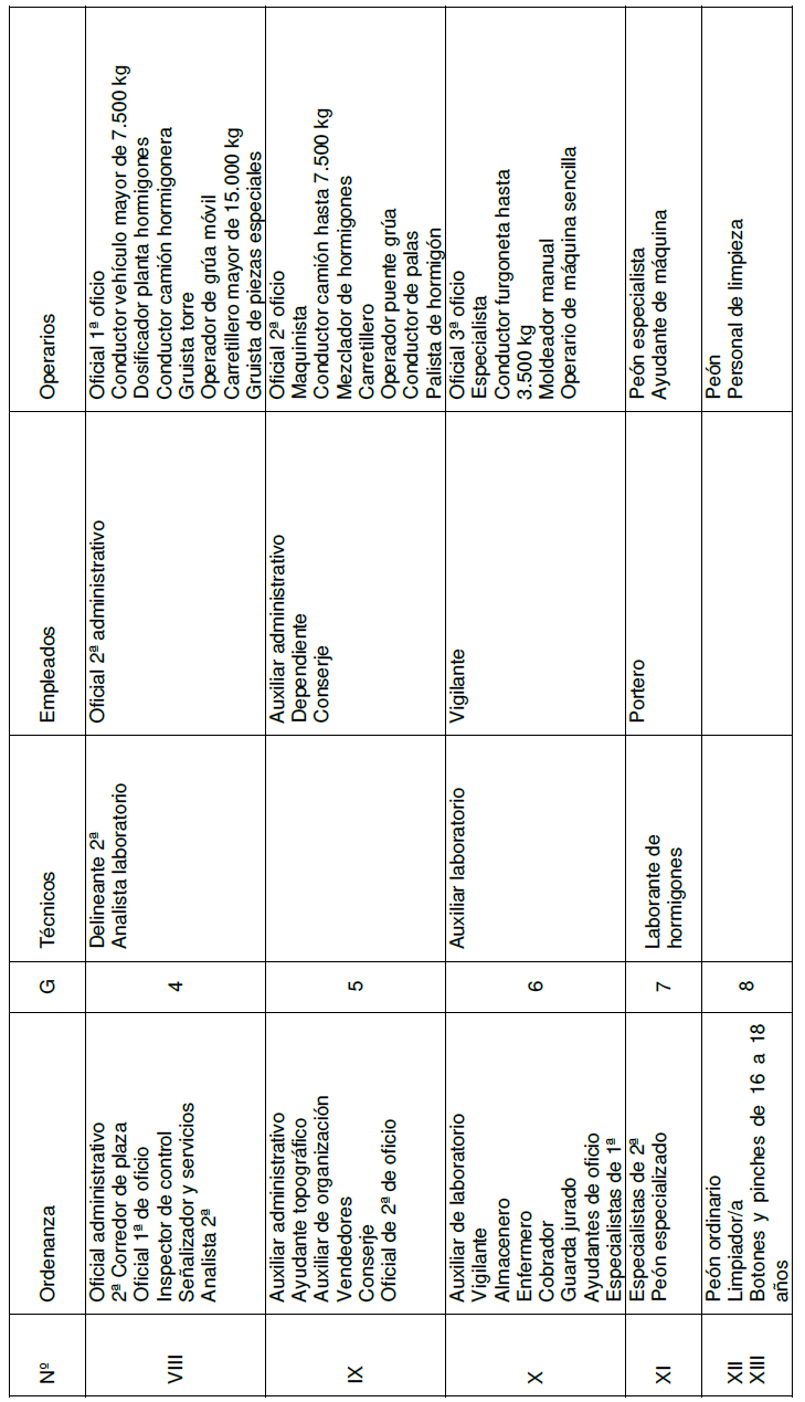 ANEXO IX.- CLASIFICACIÓN PROFESIONAL. TABLA ORIENTATIVA.