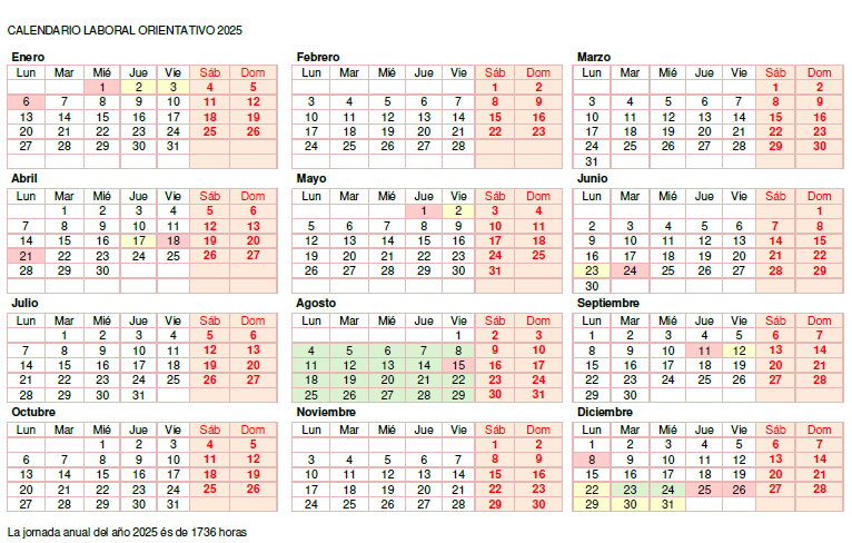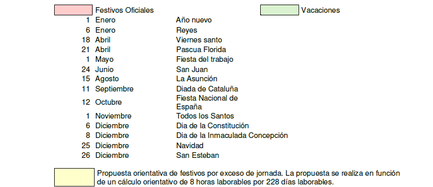 – Calendario laboral anual por adaptación de la jornada pactada en el Convenio general.