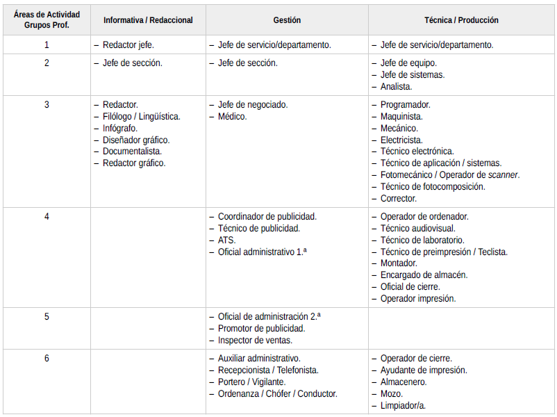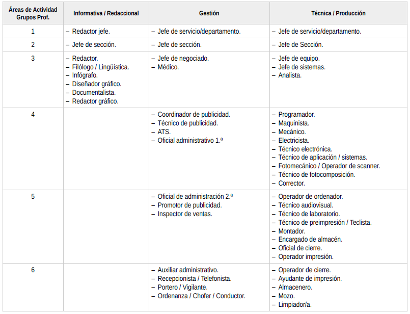 A la firma de este convenio colectivo, se eliminan los grupos profesionales de auxiliar de redacción y ayudante de redacción.