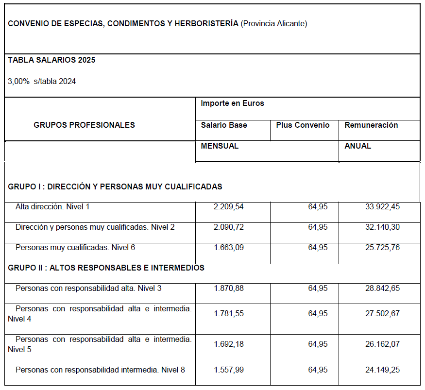 CONVENIO COLECTIVO PROVINCIAL DE ESPECIAS, CONDIMENTOS Y HERBORISTERÍA, PARA LA PROVINCIA DE ALICANTE VIGENCIA: AÑO 2025-2028.