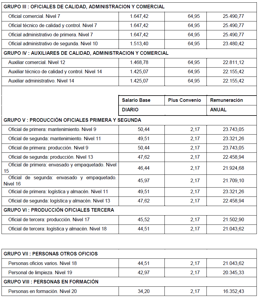 La tabla salarial de 2025 que se reproduce es la anterior tabla salarial de 2024 con el incremento anual pactado del 3,00%.