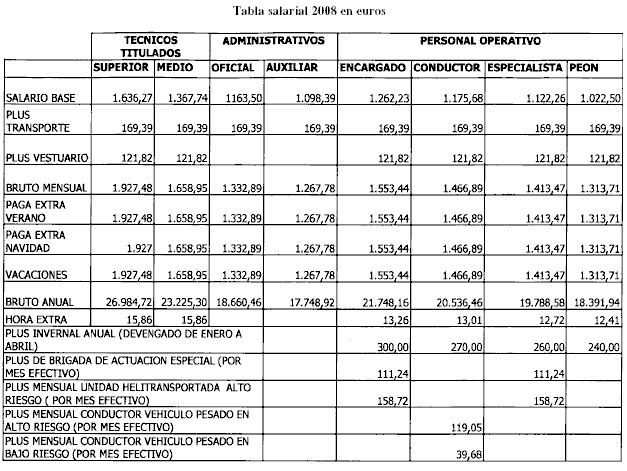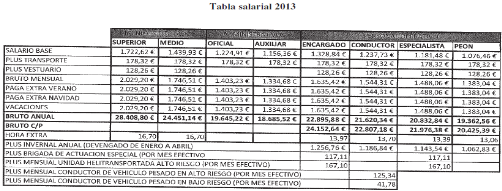 Los representantes de ASEPEIF exponen su postura de que el nuevo convenio colectivo se mantenga exactamente en los términos del anterior, salvo aquellos cambios legales que sean imprescindibles para su registro, siendo su vigencia del 1 de enero de 2012 al 31 de diciembre de 2016, adecuando las tablas salariales vigentes en 2013 (las que se están aplicando en este momento), de acuerdo a la siguiente tabla: