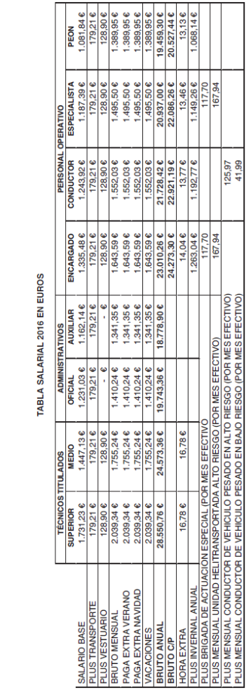 1. Se aprueban las tablas salariales correspondientes al año 2016 que se adjunta a este documento.