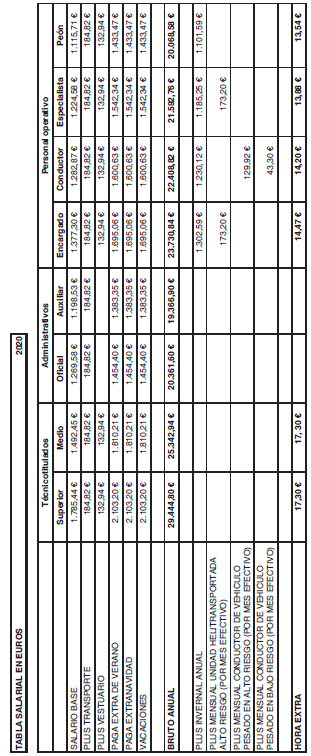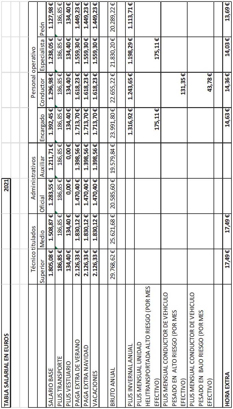 Se alcanza un acuerdo expreso y unánime referente a las retribuciones para el año 2021, que queda establecida definitivamente según se establece en las tablas adjuntas.