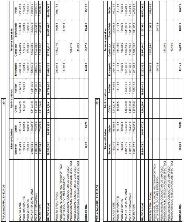 Primero: Se alcanza un acuerdo expreso y unánime referente a las retribuciones para los años 2017, 2018, 2019 y 2020 que quedan establecidas definitivamente según se establece en las tablas adjuntas. El pago de los atrasos resultantes, en su caso, se abonará antes del 1 de octubre de 2020.